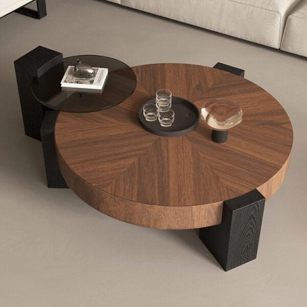 Table Centrale Contemporaine En Bois + Céramique