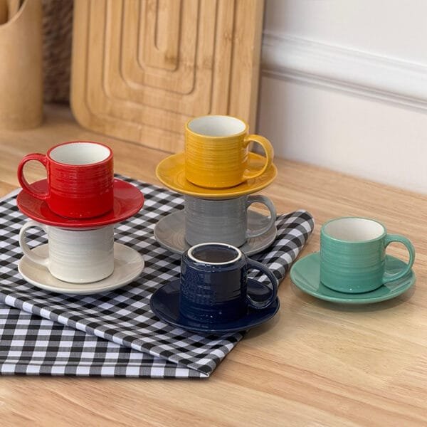 Lot De 6 Tasses + Sous-Tasses Colorés 200ml