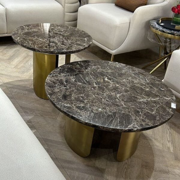 Ensemble De 2 Tables Centrales Rondes “TRAVERA” Effet Travertin